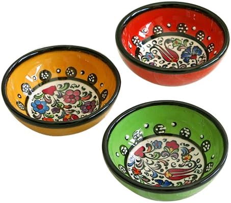 Amazon トルコ お土産 キュタフヤ陶器手描き小物入れ3個セット トルコ 雑貨 グリーン オレンジ イエロー トルコ食品 あふぃえとるすん キッチン用品 通販