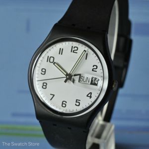 Swatch Once Again Day Date Standard Gents 34mm Black White Gb743 New Battery Ebay