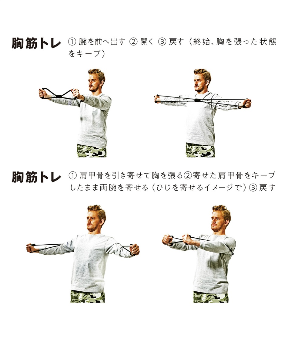 肩甲骨を寄せて鎖骨を出すためのゴムチューブを使った矯正体操 体操 二の腕エクササイズ 二の腕のたるみ