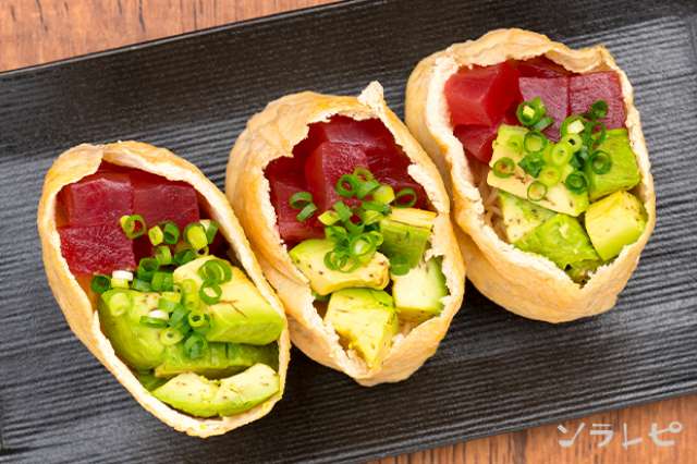 わさび醤油と相性抜群マグロとアボカドのそうめんいなりのレシピ ソラレピ
