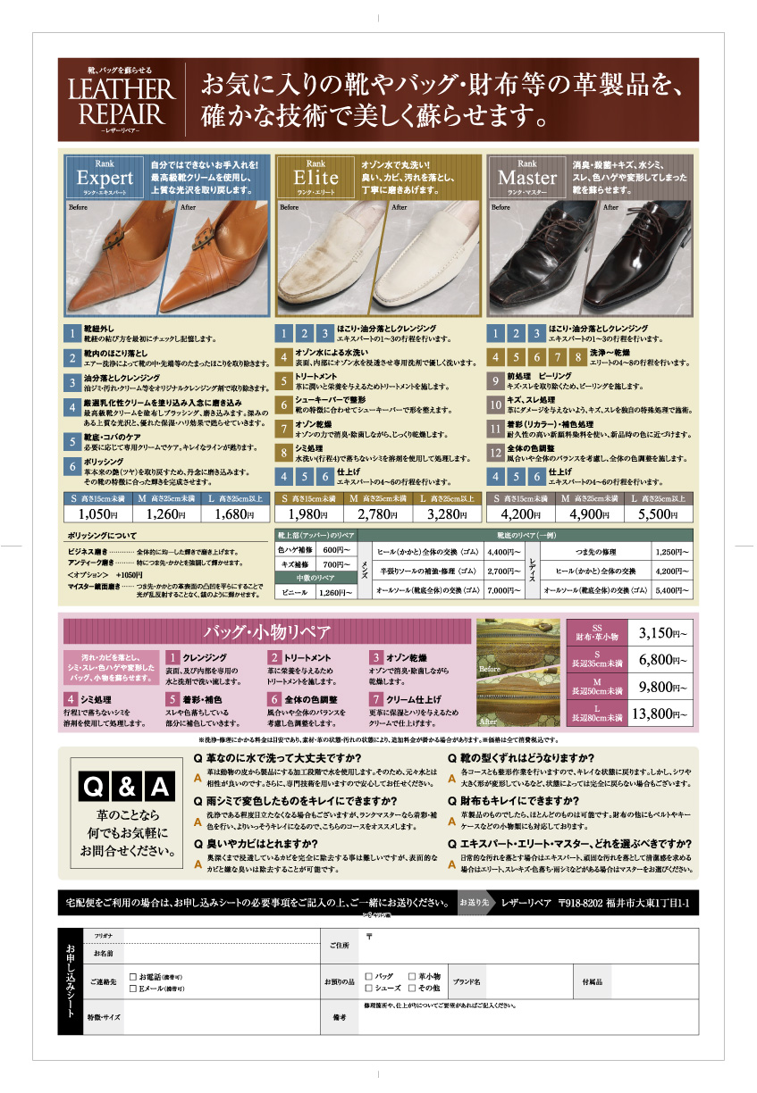 レザーリペア 福井市 靴 バッグの修理 クリーニング 株 クレス