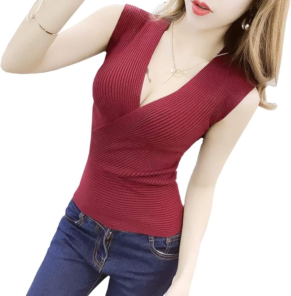 Mua リブニット レディース カットソー トップス Vネック カシュクール カットソー レディース ノースリーブ 胸元 セクシー ニット ワインレッド ワンサイズ Tren Amazon Nhật Chinh Hang Fado