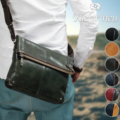 楽天市場 全品クーポン キャッシュレス5 対象 ショルダーバッグ メンズ 革 Kiefer Neu キーファーノイ Ciao チャオ 肩掛け 斜めがけ バッグ 本革 イタリアンレザー 牛革 軽量 メンズバッグ ブランド プレゼント 鞄 かばん カバン Bag 小さめ 送料無料 海外旅行