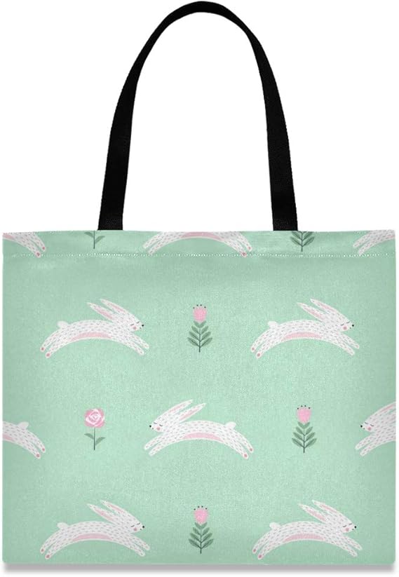 Amazon エコバッグ 折りたたみ 人気 大容量 コンビニ 買い物袋 コンパクト おしゃれ ショッピングバッグ 軽量 大きめ 買い物バッグ レジ袋 うさぎ ラビット 花 動物 トートバック 布 キャンバス 帆布 肩掛け 女の子 レディース トートバッグ