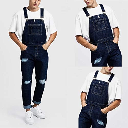 19 メンズ 3xl リッピングデニムジャンプスーツメンズオーバーオールファッションクールな男は 穴のジーンズパンツ貨物サスペンダーズボン男性 Gooum